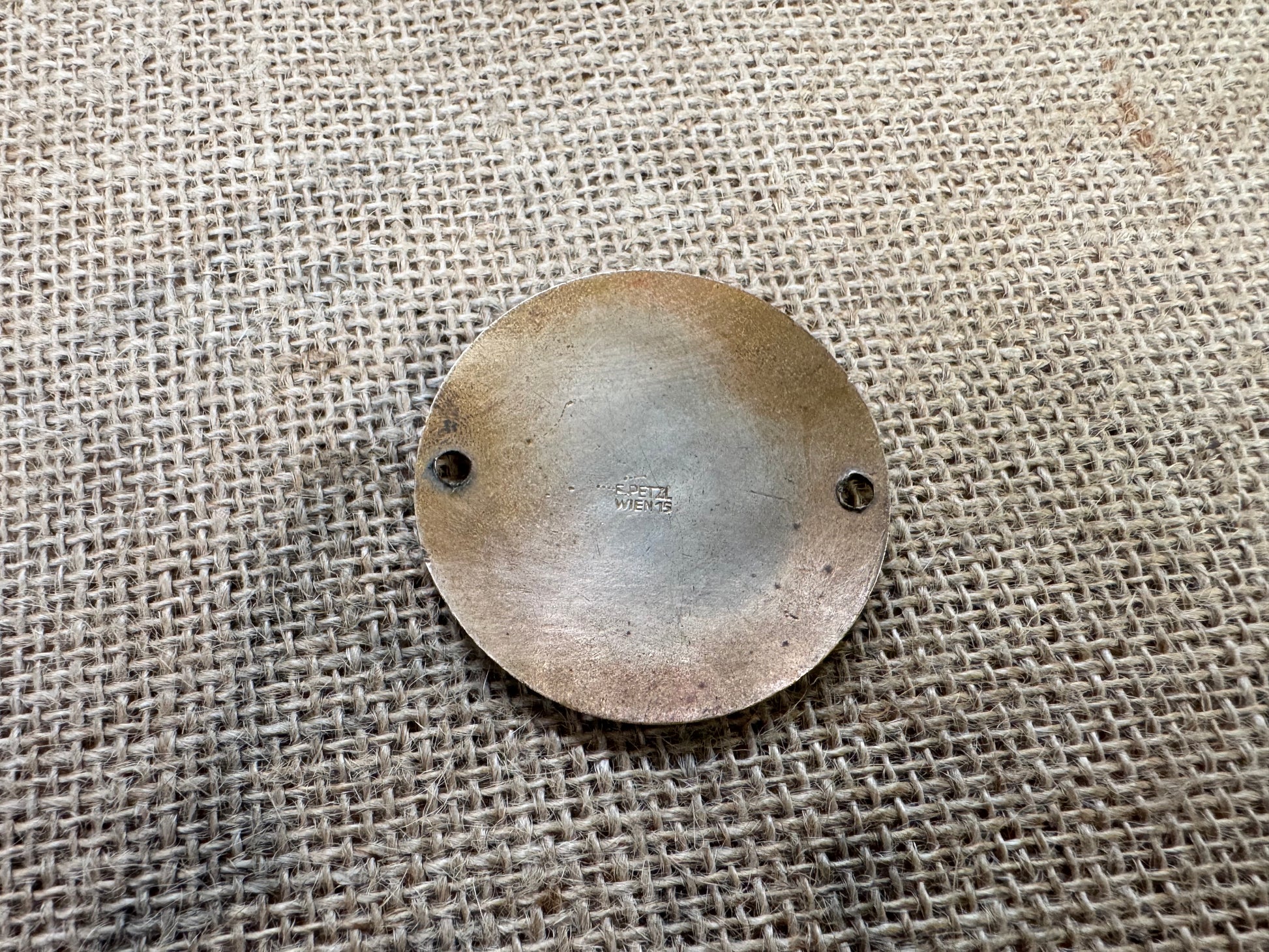 Copper pressing with enamel colour.